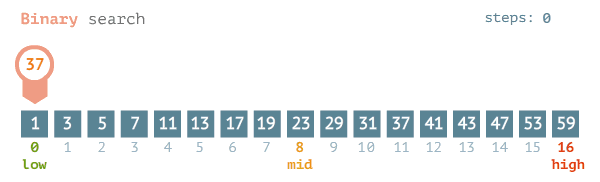 - min > max가 될 때까지 위의 과정을 반복합니다. 찾고자 하는 값이 없는 경우, 탐색 실패를 나타내는 값을 반환합니다.